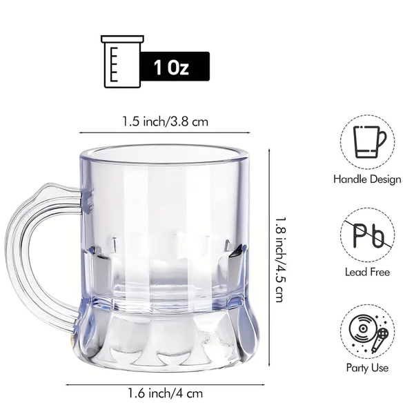 Get the party started with this set of four plastic mini beer shot glasses.