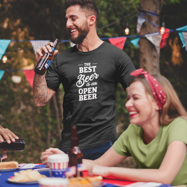 Best Beer Is An Open Beer 100% Organic cotton T-Shirt. Show your love of beer.