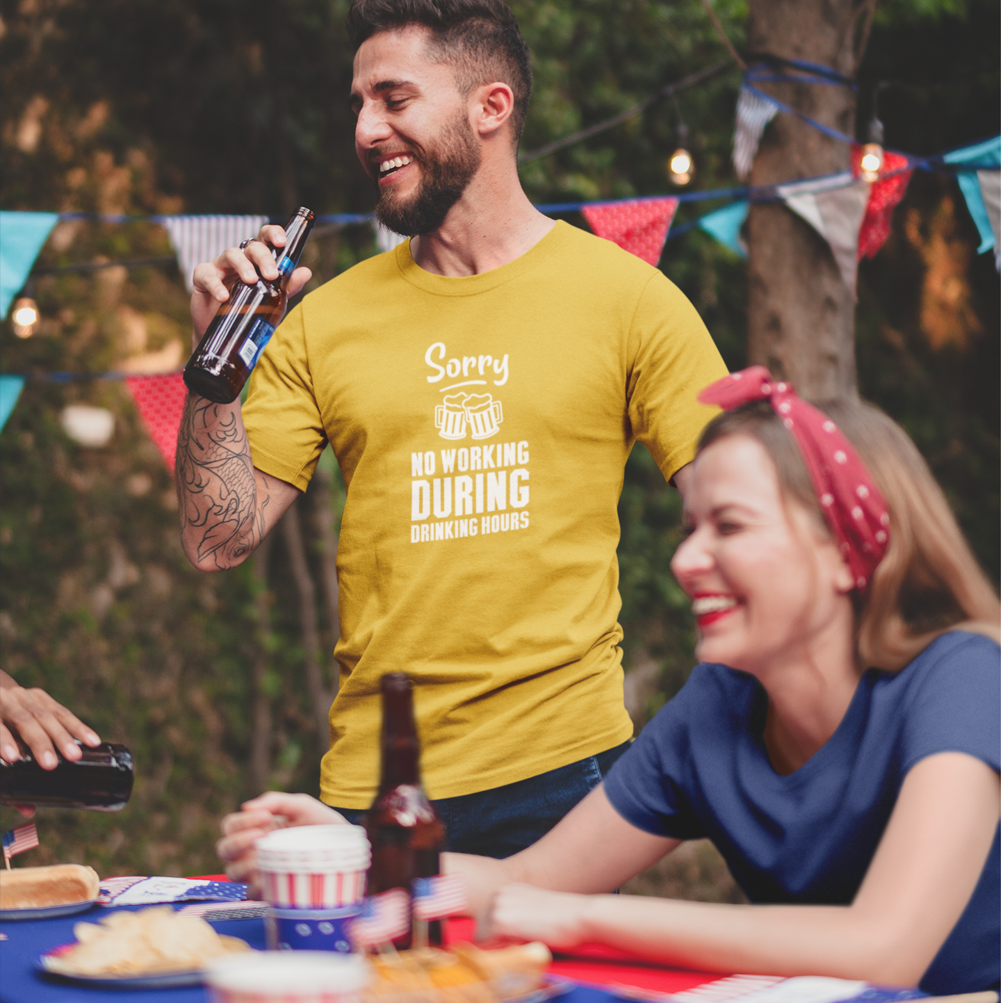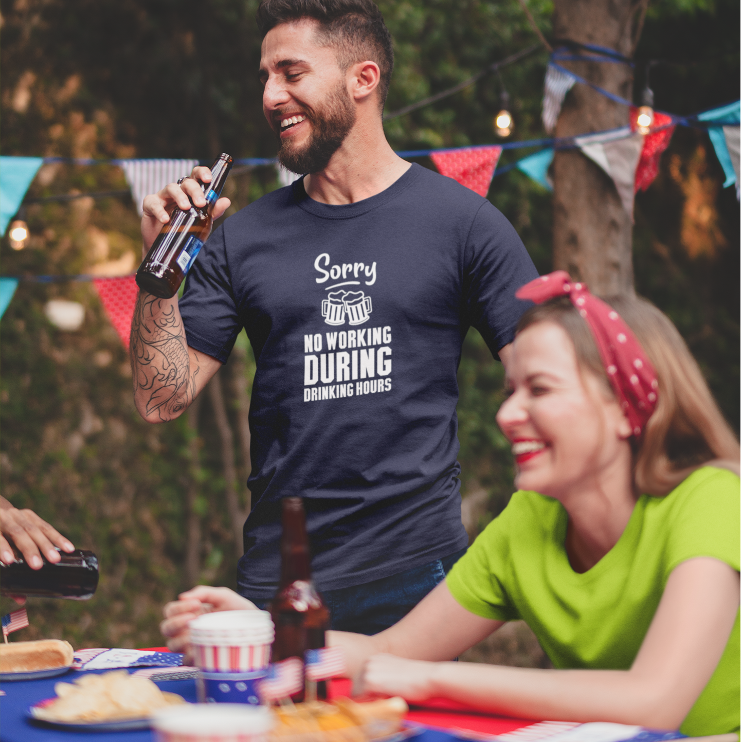 No Working During Drinking Hours T-Shirt 100% Organic cotton T-Shirt. Show your love of beer.