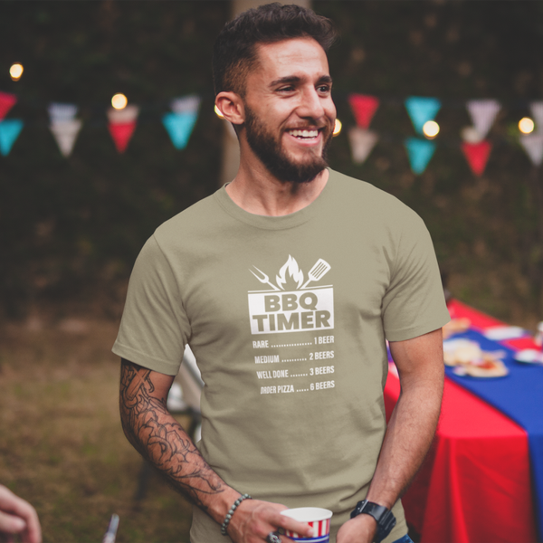 BBQ Timer T-Shirt 100% Organic cotton T-Shirt. Just so you know how many beers to have before it's pizza time.