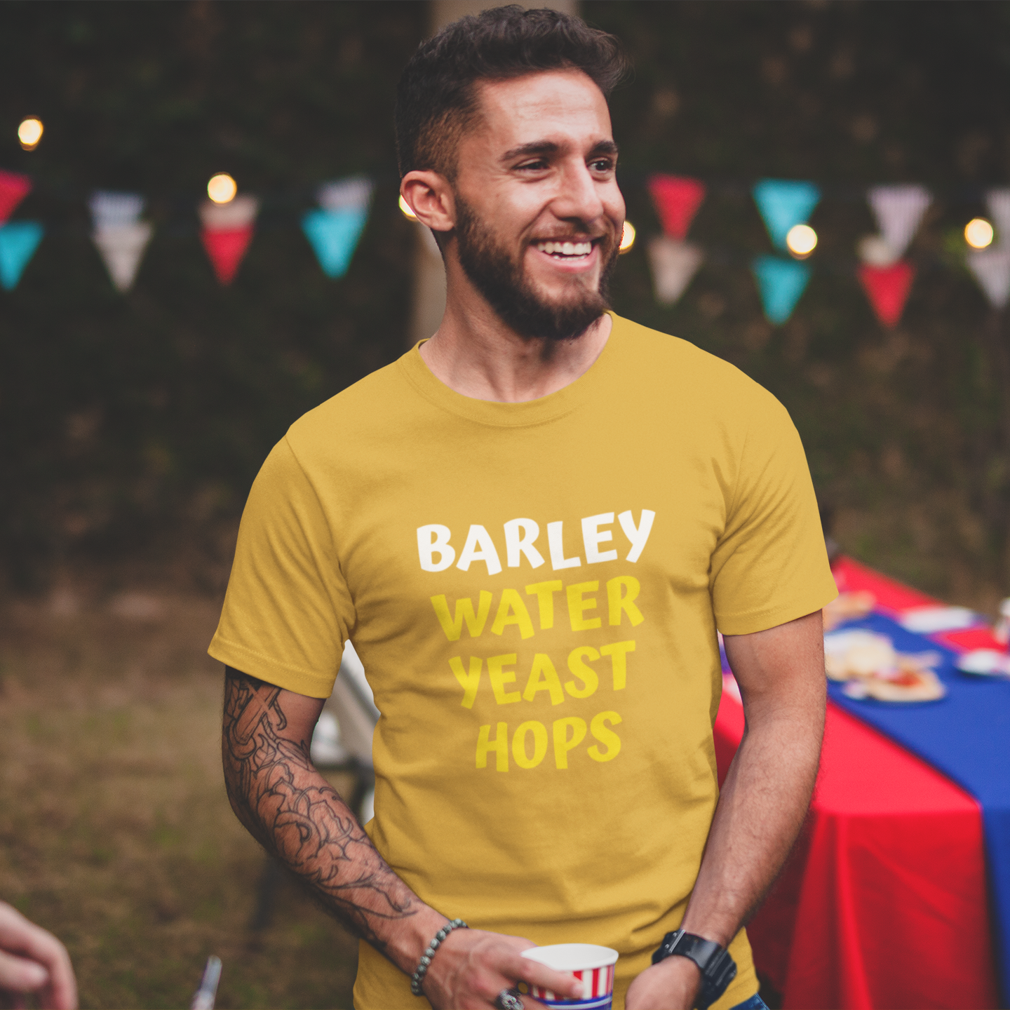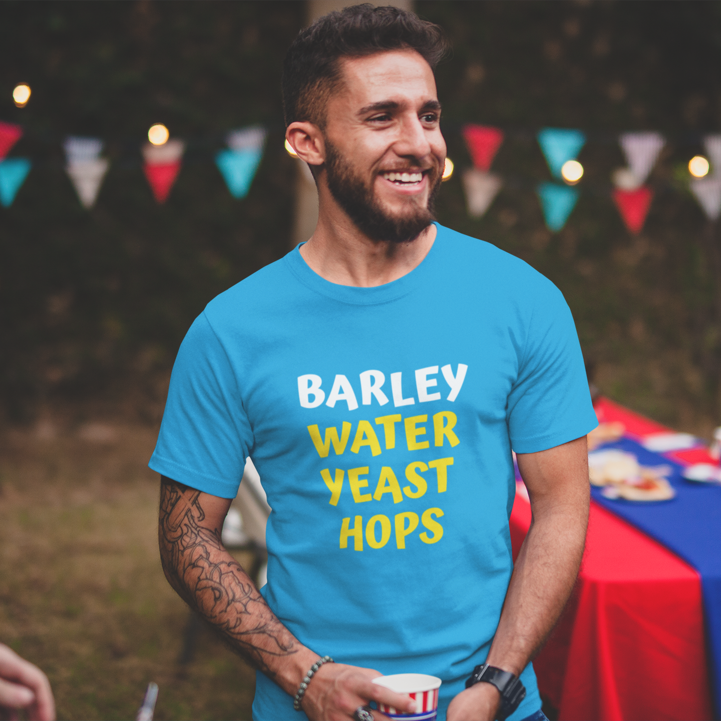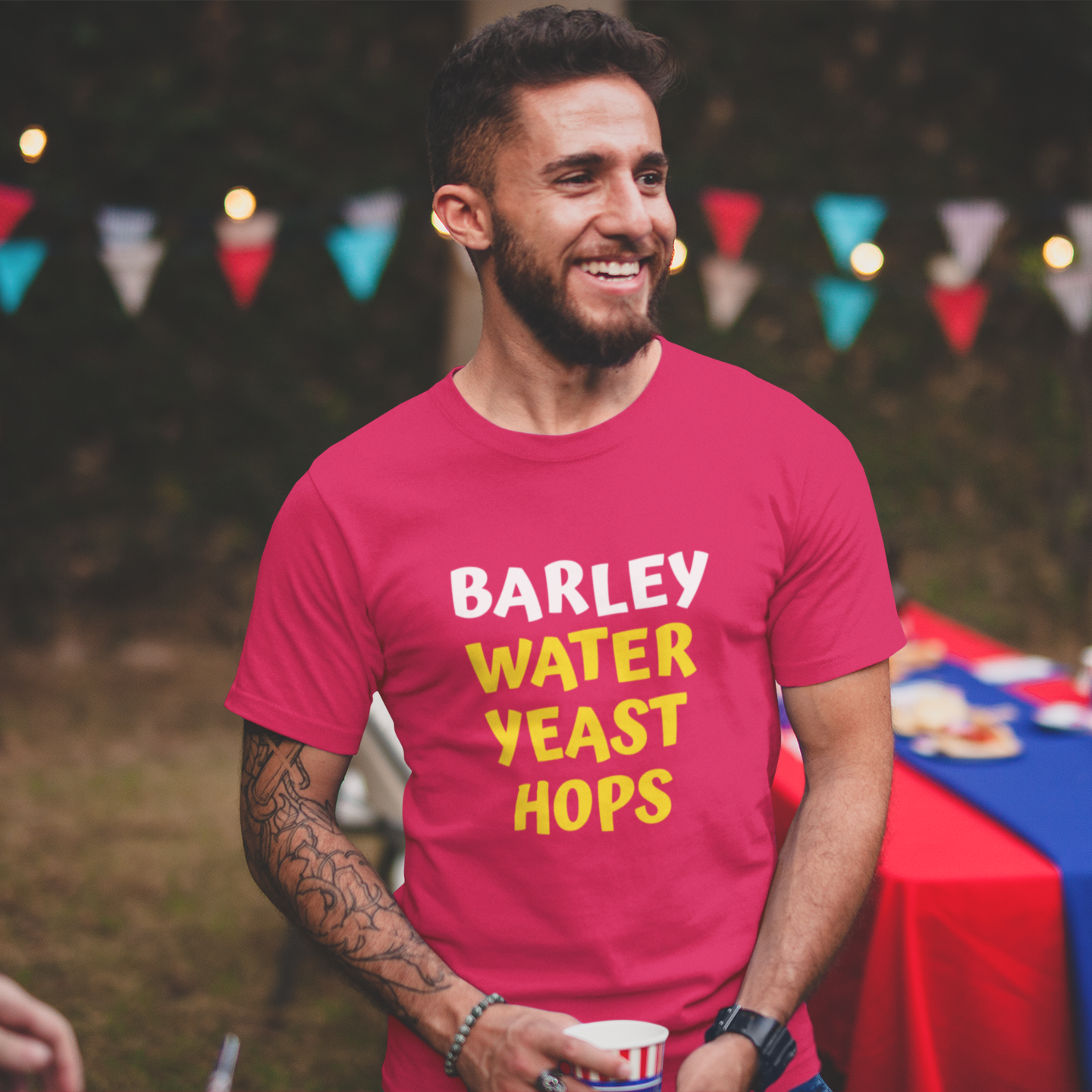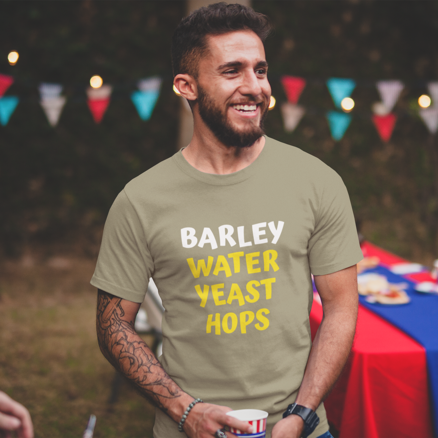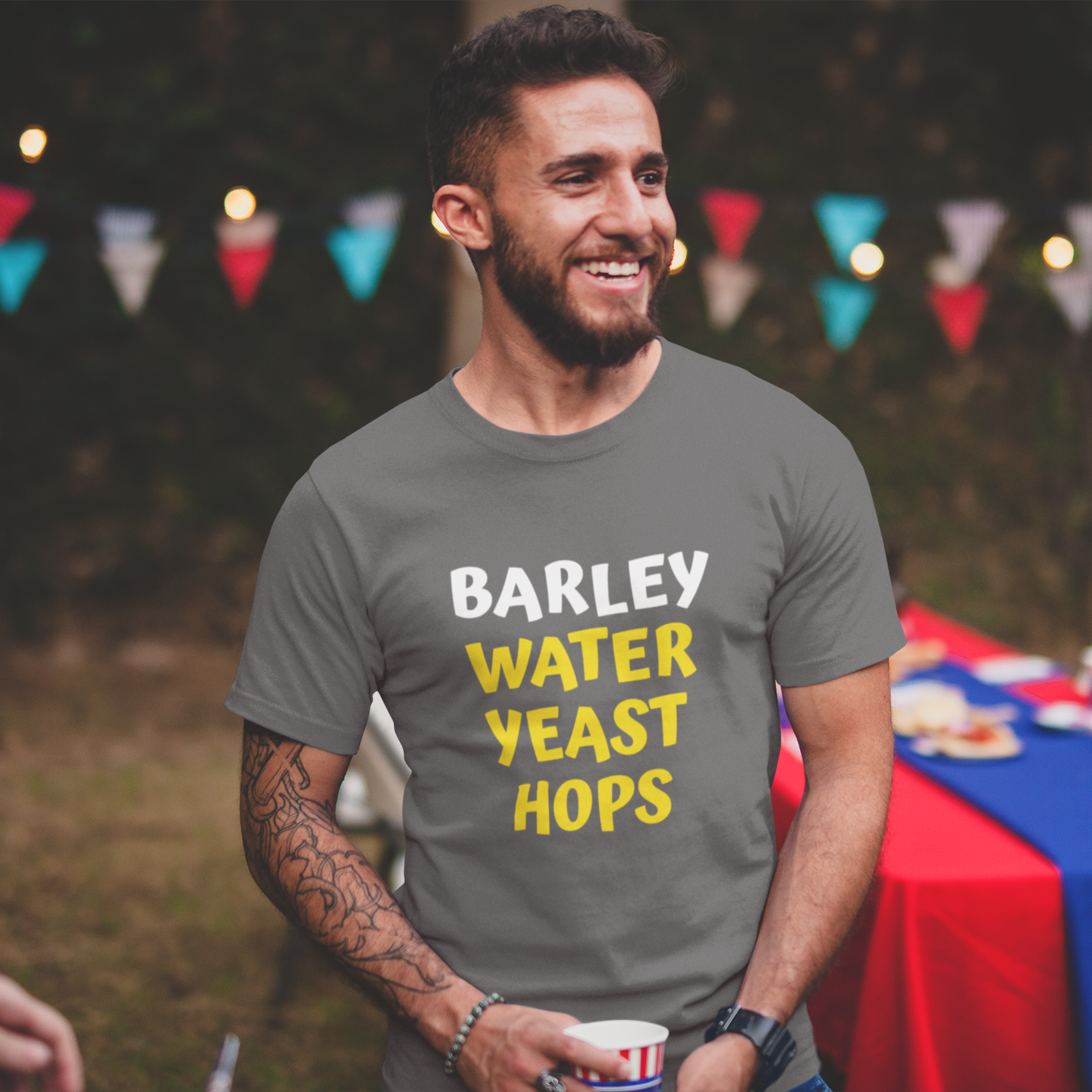 Barley Water Yeast Hops 100% Organic cotton T-Shirt. Show your love of beer.